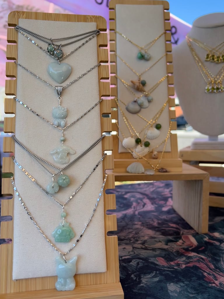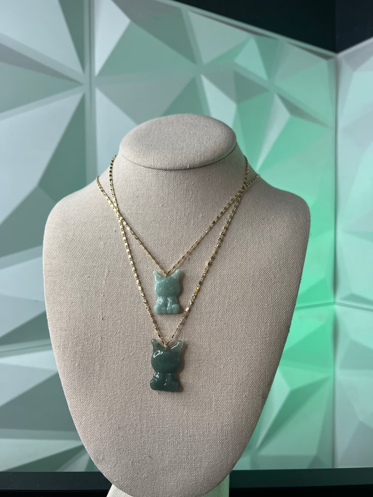 kuromi inspired jade pendant. grade a jade, colors vary. 18" gold-filled accent chain.