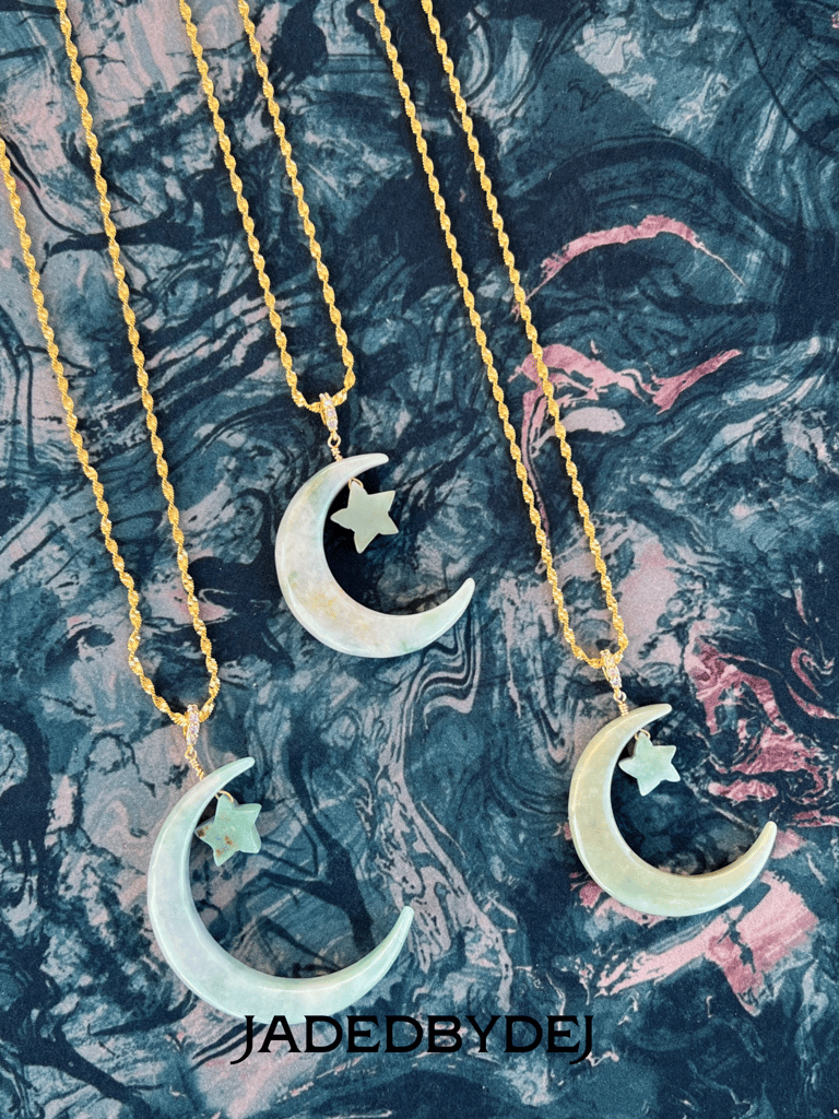 PHASE 2: ABOVE THE MOON. Authentic Jade Moon and Star Pendant 🌙