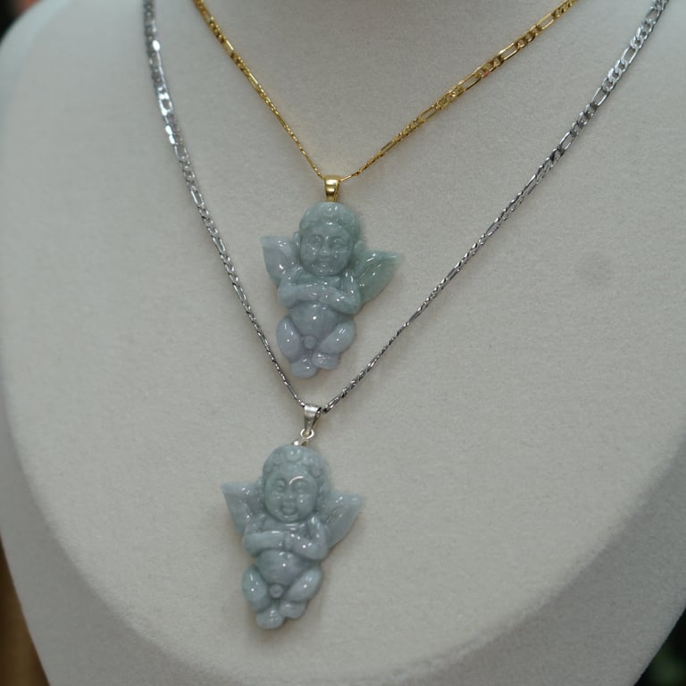 Authentic Grade A Jade Baby Angel Pendant Necklace.